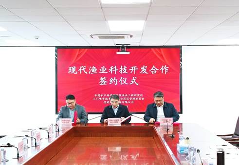 簽約儀式上,崔國輝副院長、韓際東主任和劉彥勛總經理代表三方簽訂了現代漁業科技開發合作協議。根據協議,三方將本著平等自愿、優勢互補、互惠互利、共同發展原則,圍繞漁業現代漁業科技開發等方面開展合作,實現共建共享、共同發展,進一步推動推動示范區漁業向設施化、現代化智慧漁業轉型升級。